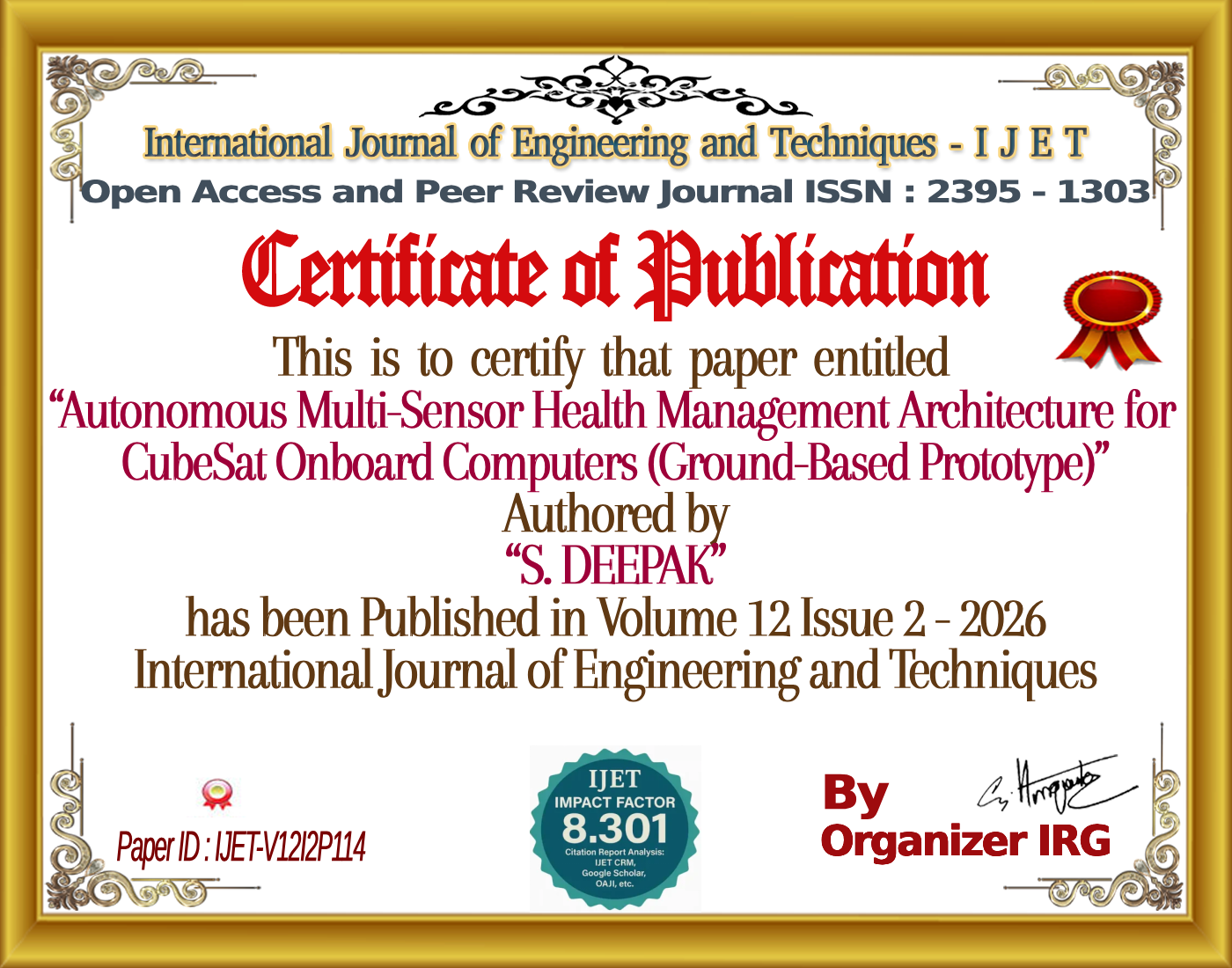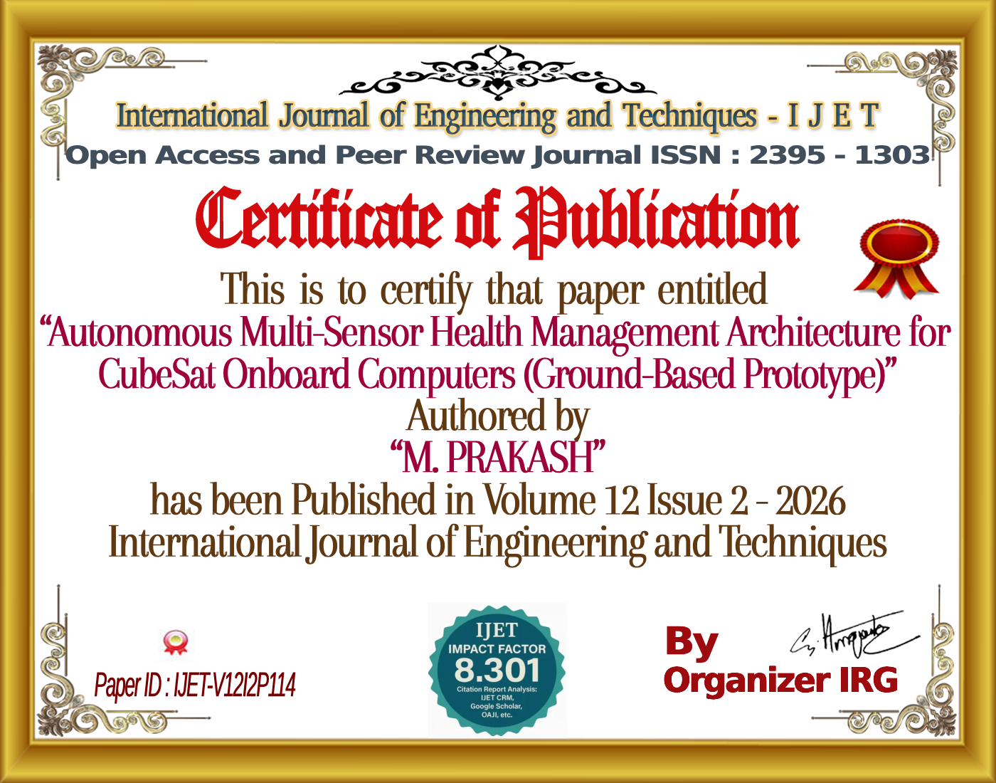 Autonomous Multi-Sensor Health Management Architecture for CubeSat Onboard Computers (Ground-Based Prototype) | IJET â Volume 12 Issue 2 | IJET-V12I2P114
