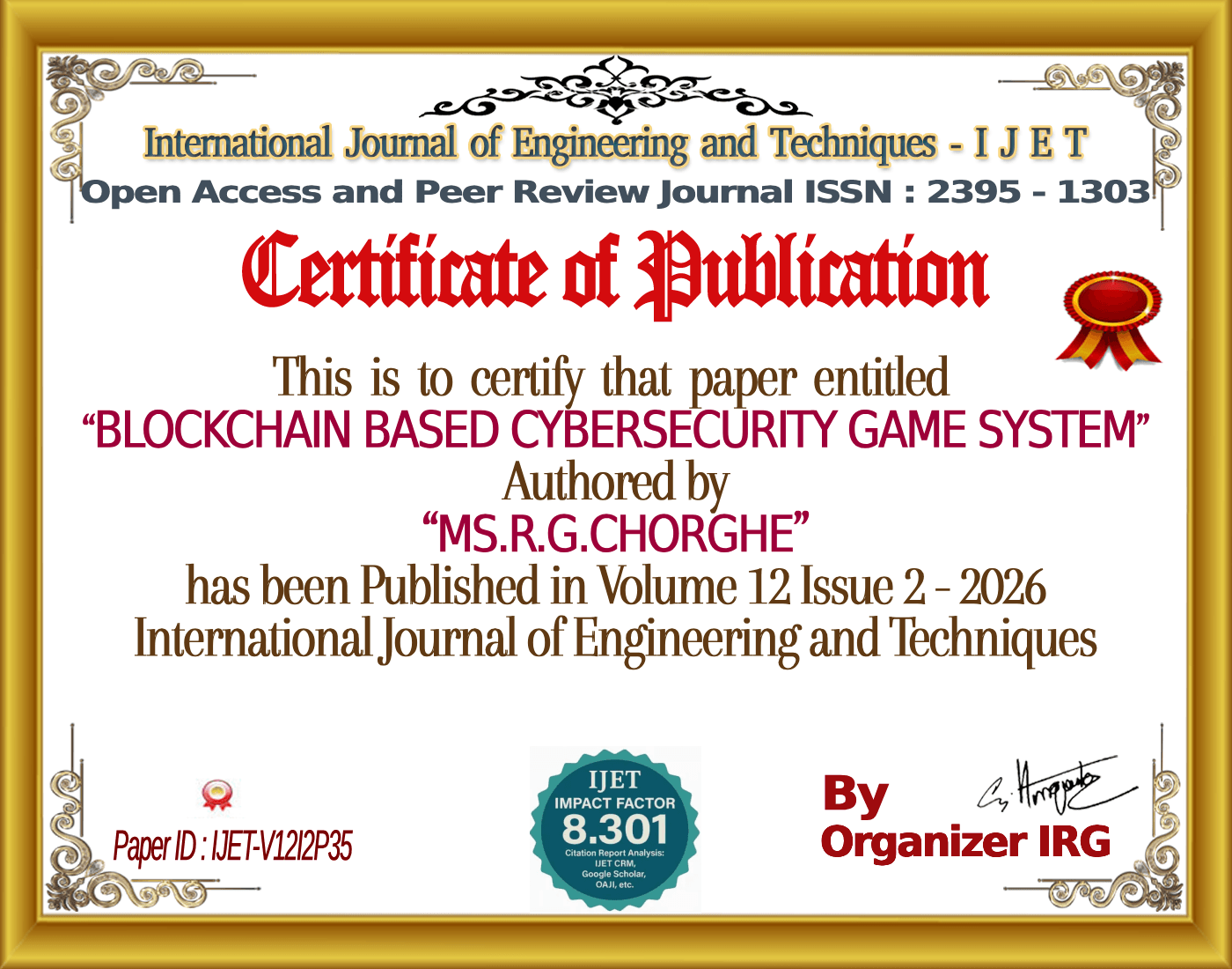 BLOCKCHAIN BASED CYBERSECURITY GAME SYSTEM | IJET – Volume 12 Issue 2 | IJET-V12I2P35