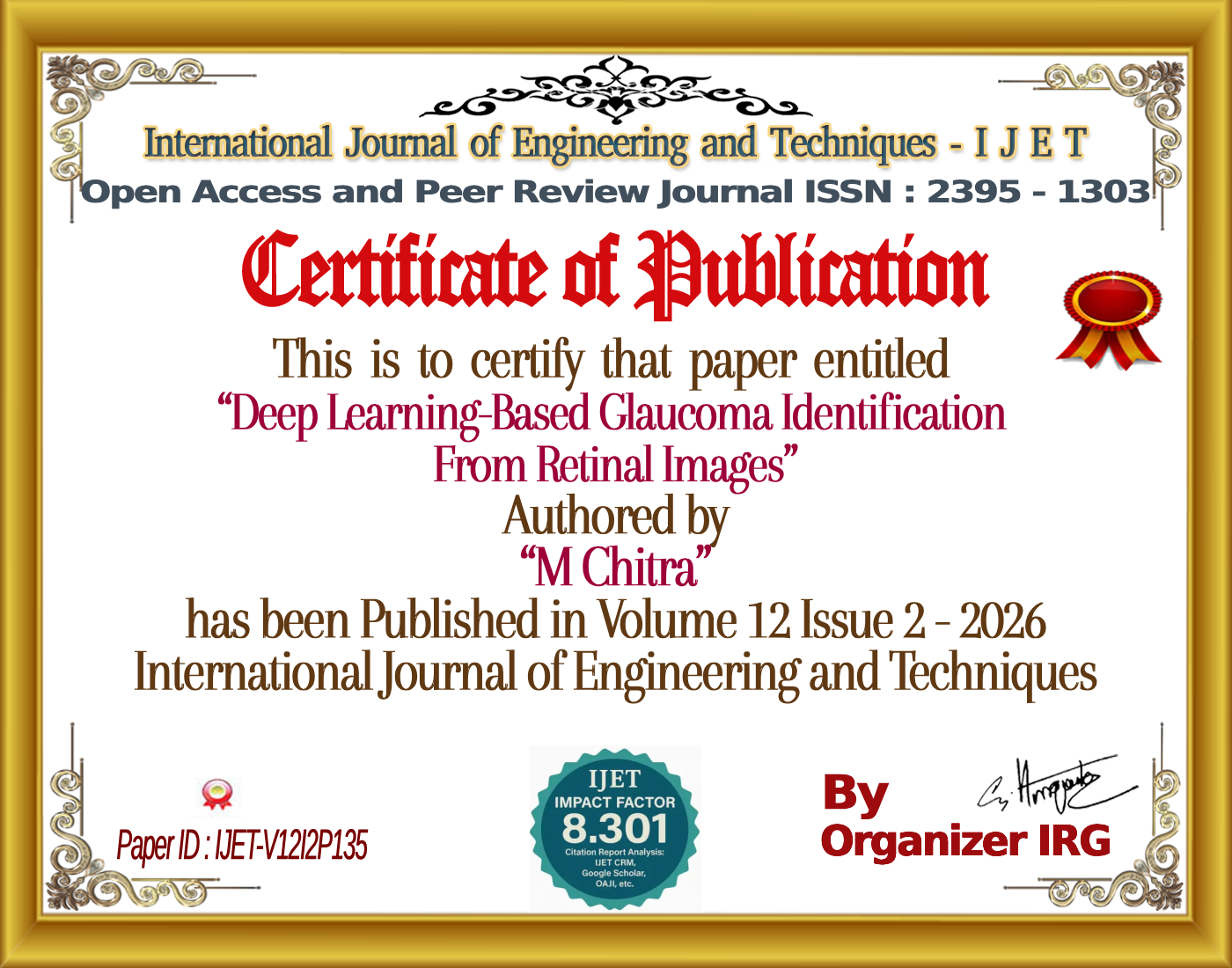 Deep Learning-Based Glaucoma Identification From Retinal Images | IJET – Volume 12 Issue 2 | IJET-V12I2P135