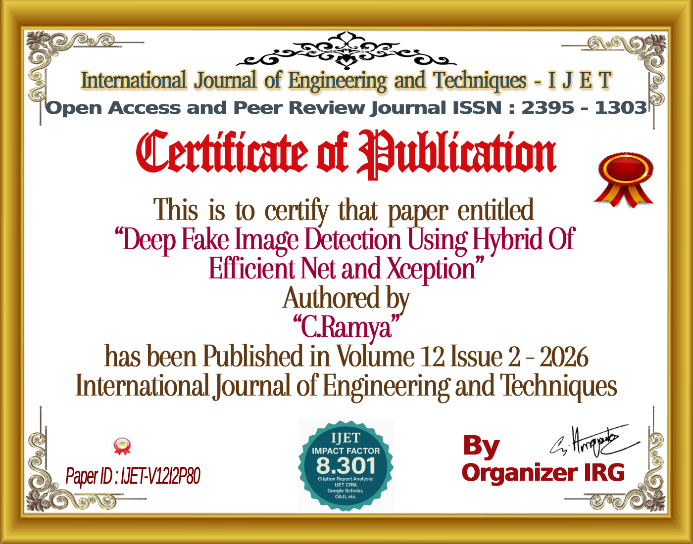Deep Fake Image Detection Using Hybrid Of Efficient Net and Xception | IJET – Volume 12 Issue 2 | IJET-V12I2P80
