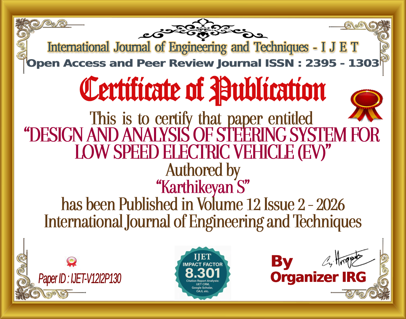 DESIGNÂ ANDÂ ANALYSISÂ OFÂ STEERING SYSTEM FOR LOW SPEED ELECTRIC VEHICLE (EV) | IJET â Volume 12 Issue 2 | IJET-V12I2P130