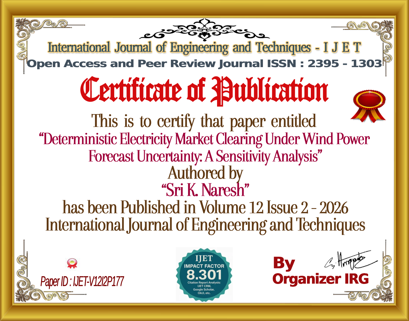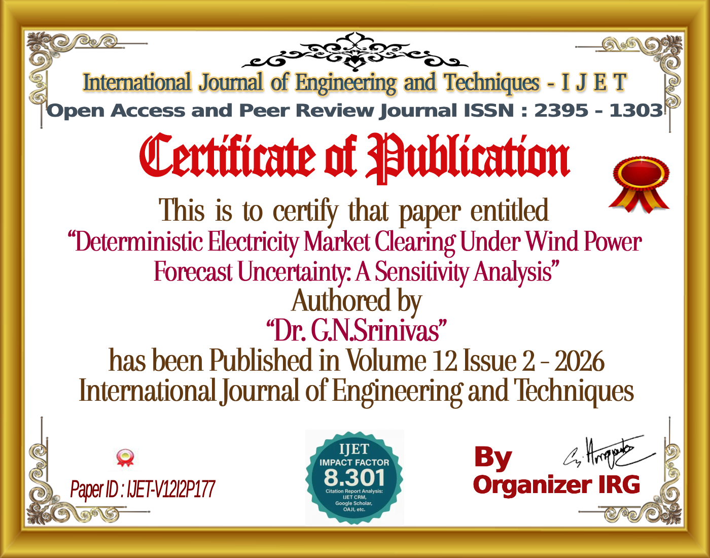 Sri K. Naresh, Dr. G.N.Srinivas (April 2026). Deterministic Electricity Market Clearing Under Wind Power Forecast Uncertainty: A Sensitivity Analysis. International Journal of Engineering and Techniques (IJET), 12(2). https://doi.org/{{doi}}