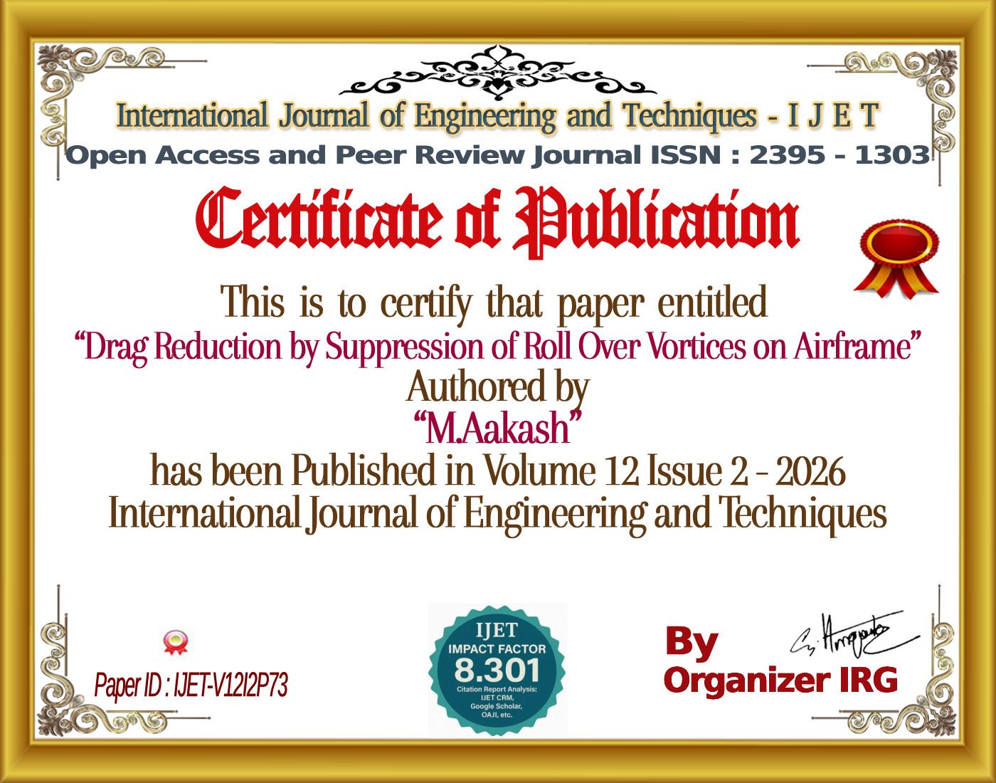 Drag Reduction by Suppression of Roll Over Vortices on Airframe | IJET â Volume 12 Issue 2 | IJET-V12I2P73
