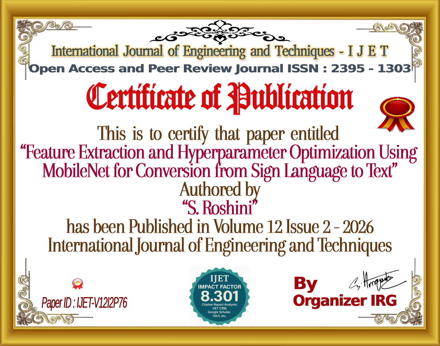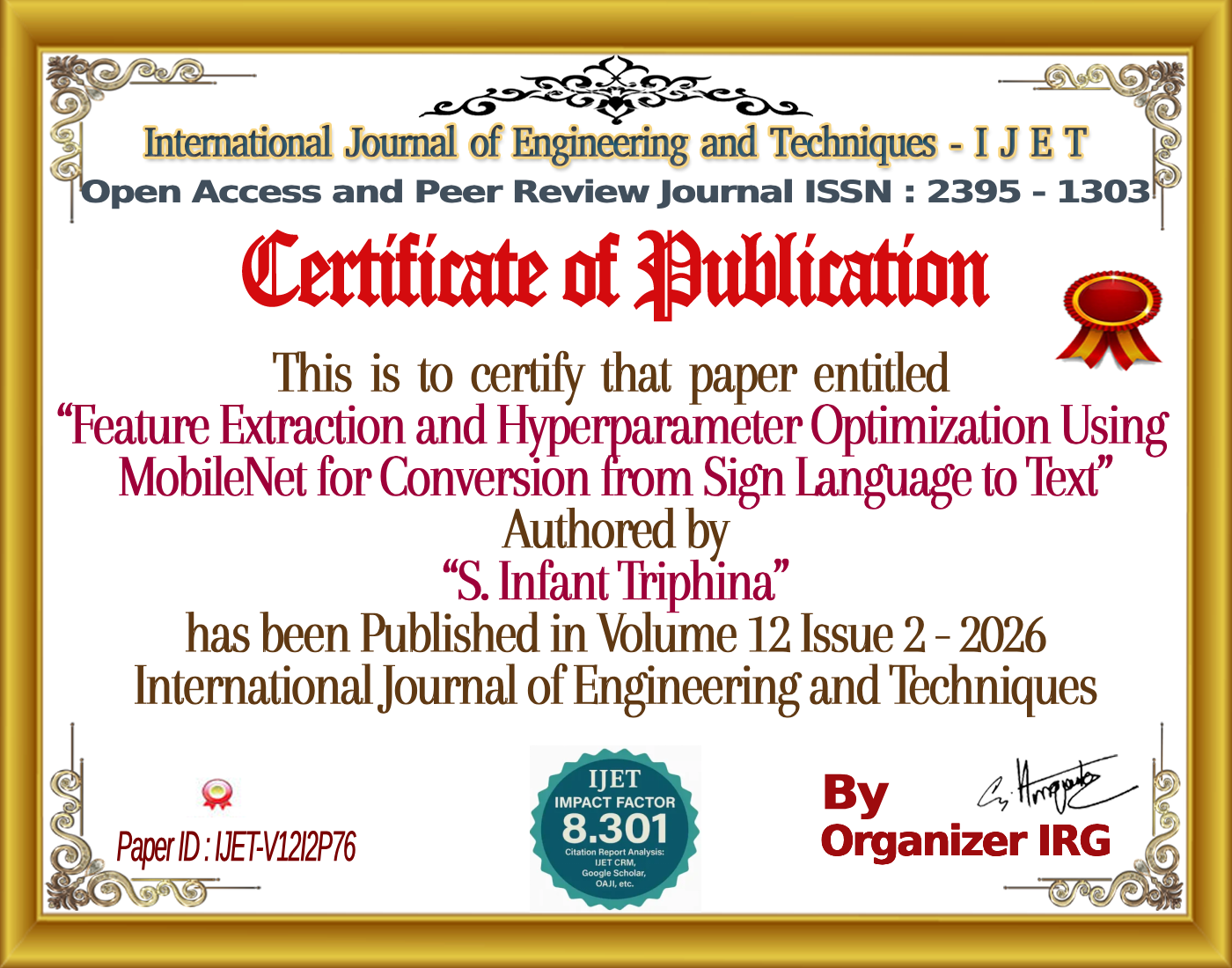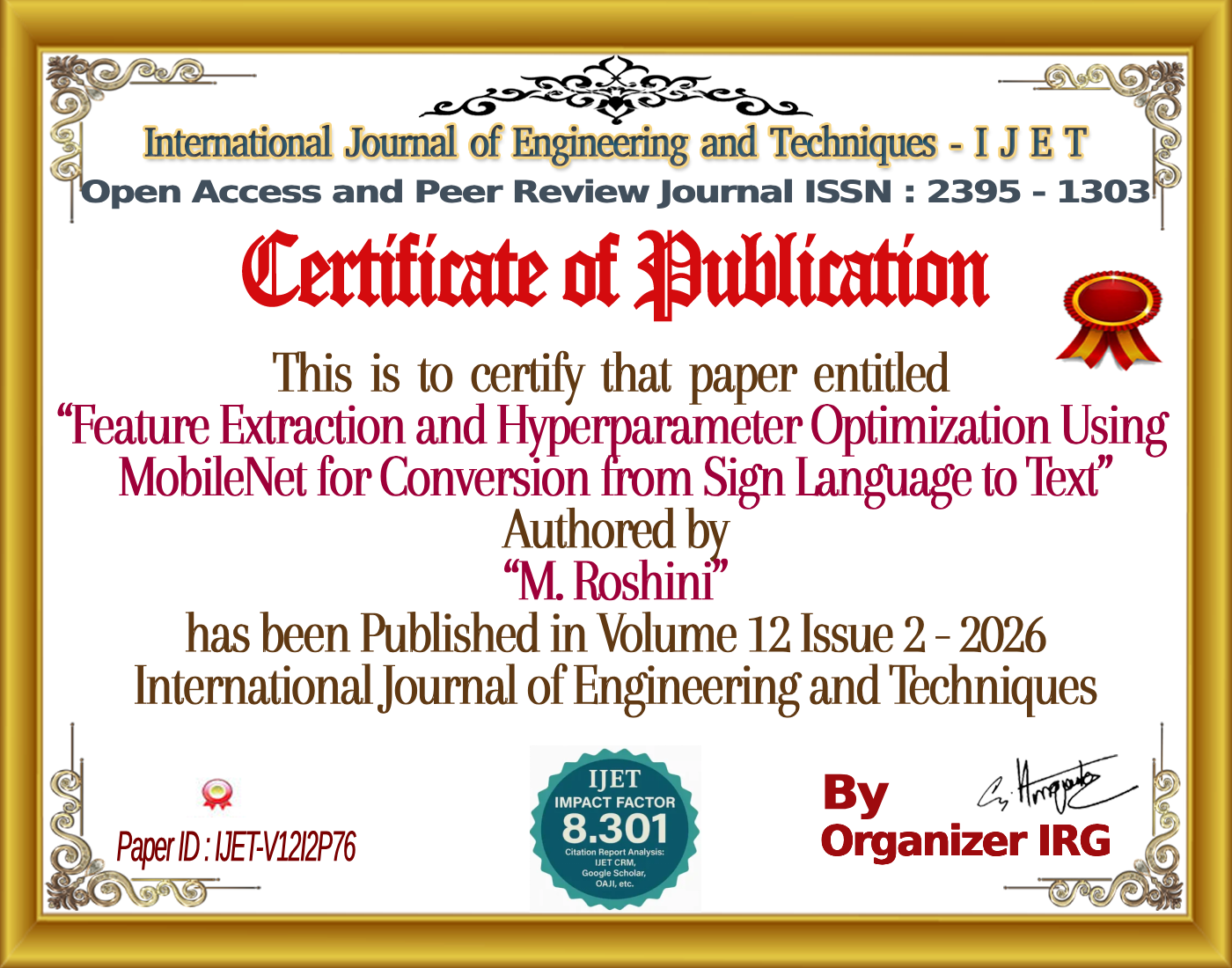 Feature Extraction and Hyperparameter Optimization Using MobileNet for Conversion from Sign Language to Text | IJET – Volume 12 Issue 2 | IJET-V12I2P76