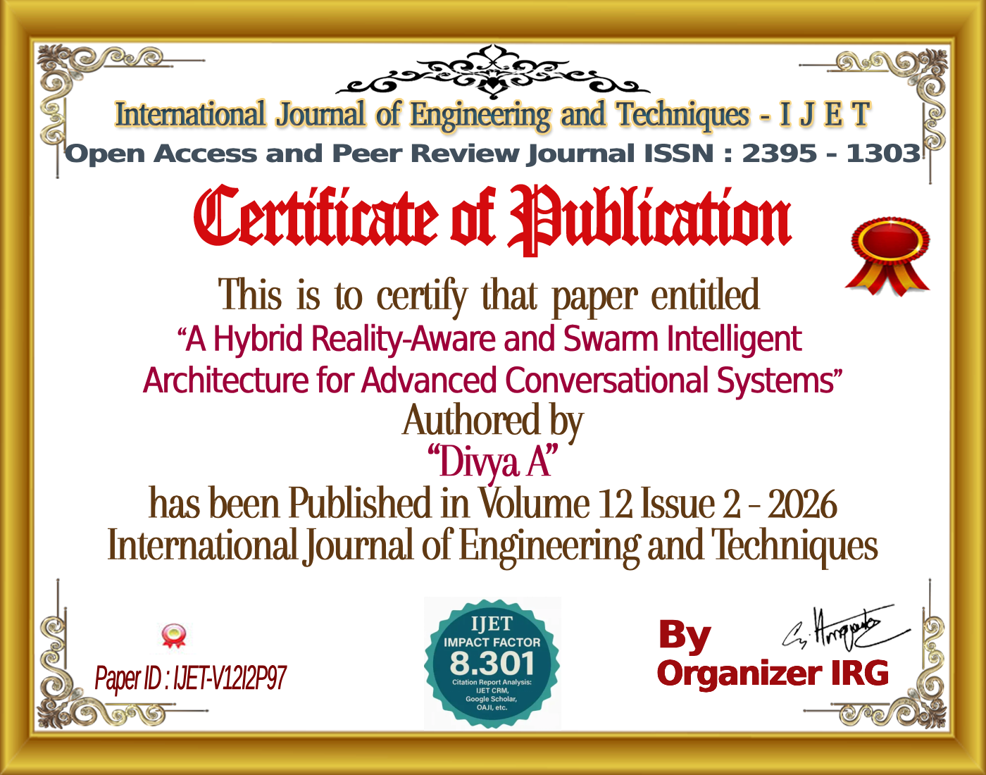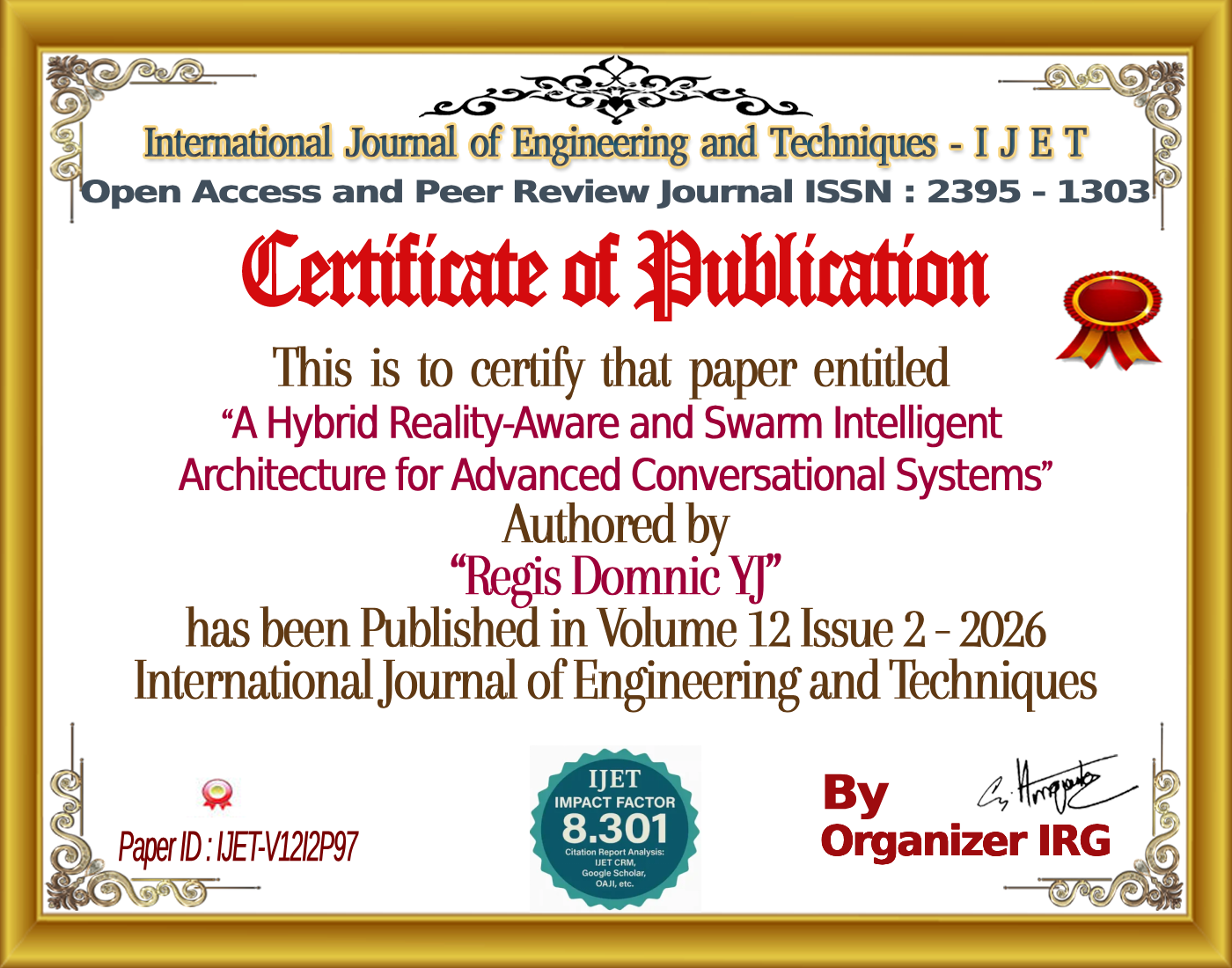 A Hybrid Reality-Aware and Swarm Intelligent Architecture for Advanced Conversational Systems | IJET â Volume 12 Issue 2 | IJET-V12I2P97