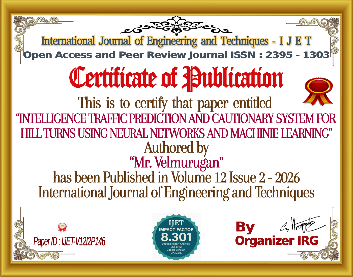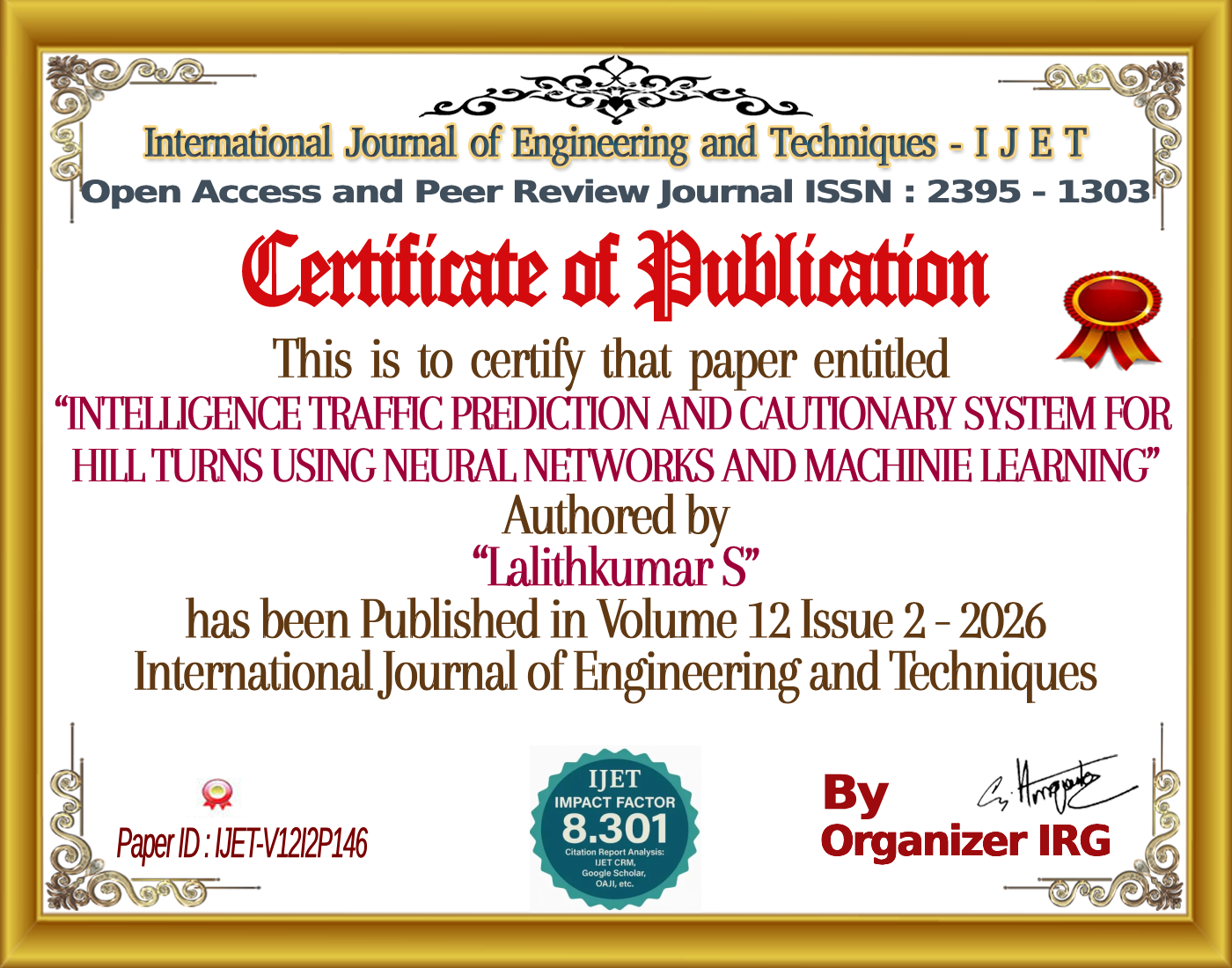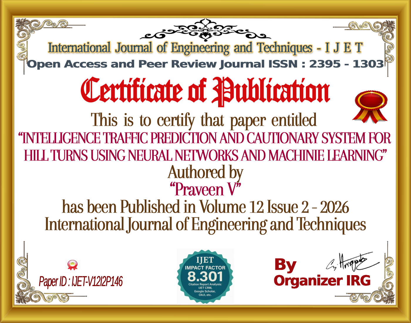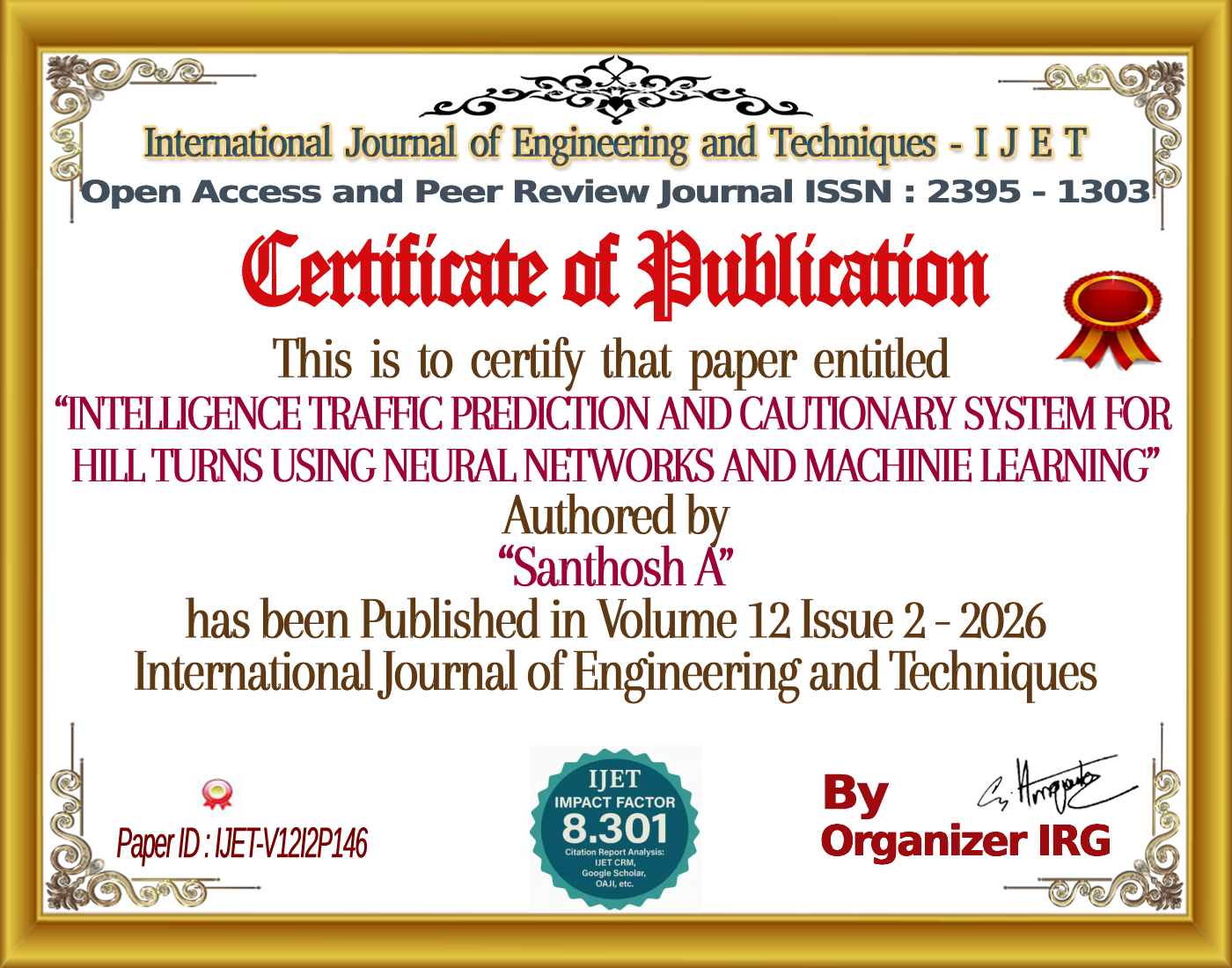 INTELLIGENCEÂ TRAFFICÂ PREDICTIONÂ AND CAUTIONARY SYSTEM FOR HILL TURNS USING NEURAL NETWORKS AND MACHINIEÂ LEARNING | IJET â Volume 12 Issue 2 | IJET-V12I2P146