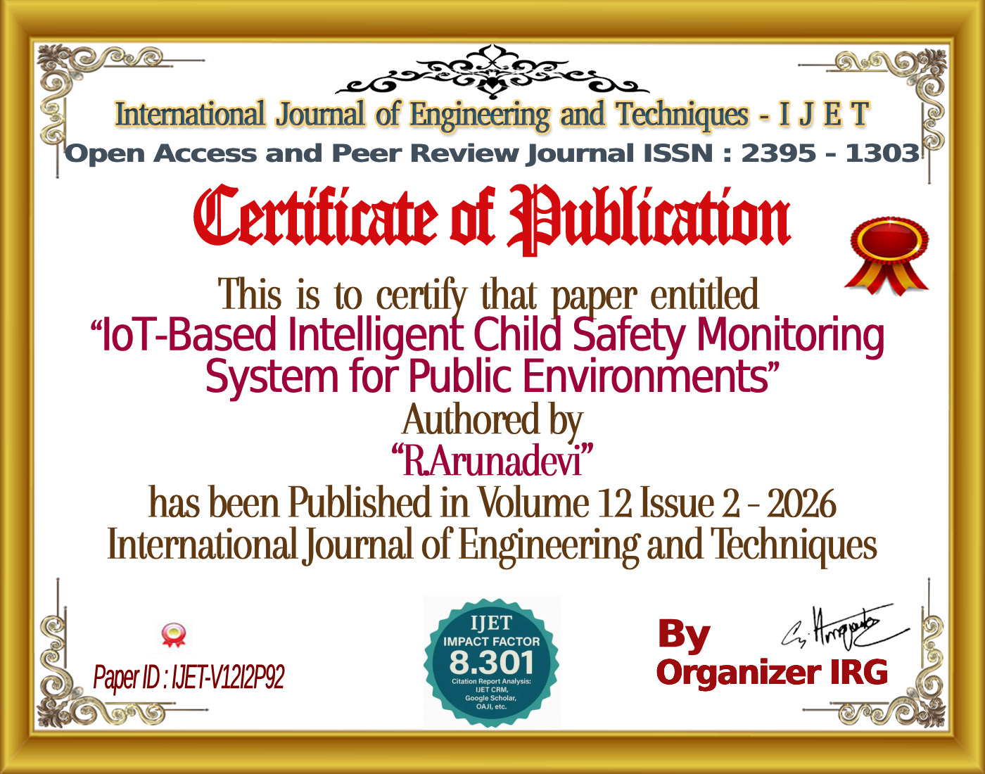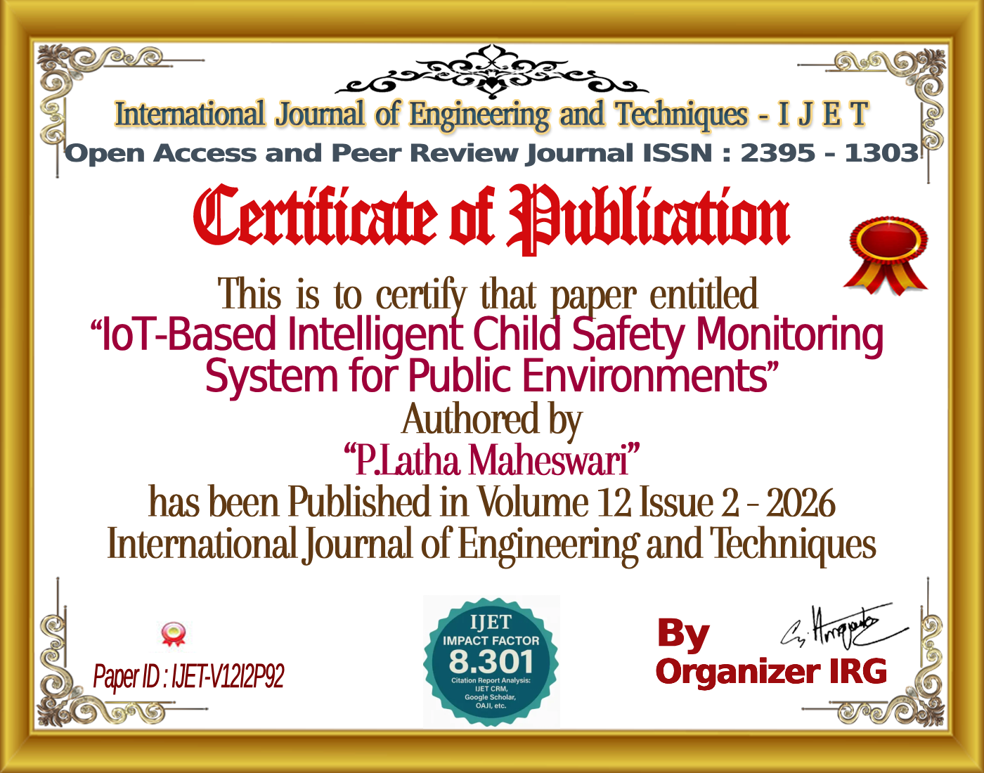 IoT‑Based Intelligent Child Safety Monitoring System for Public Environments | IJET – Volume 12 Issue 2 | IJET-V12I2P92