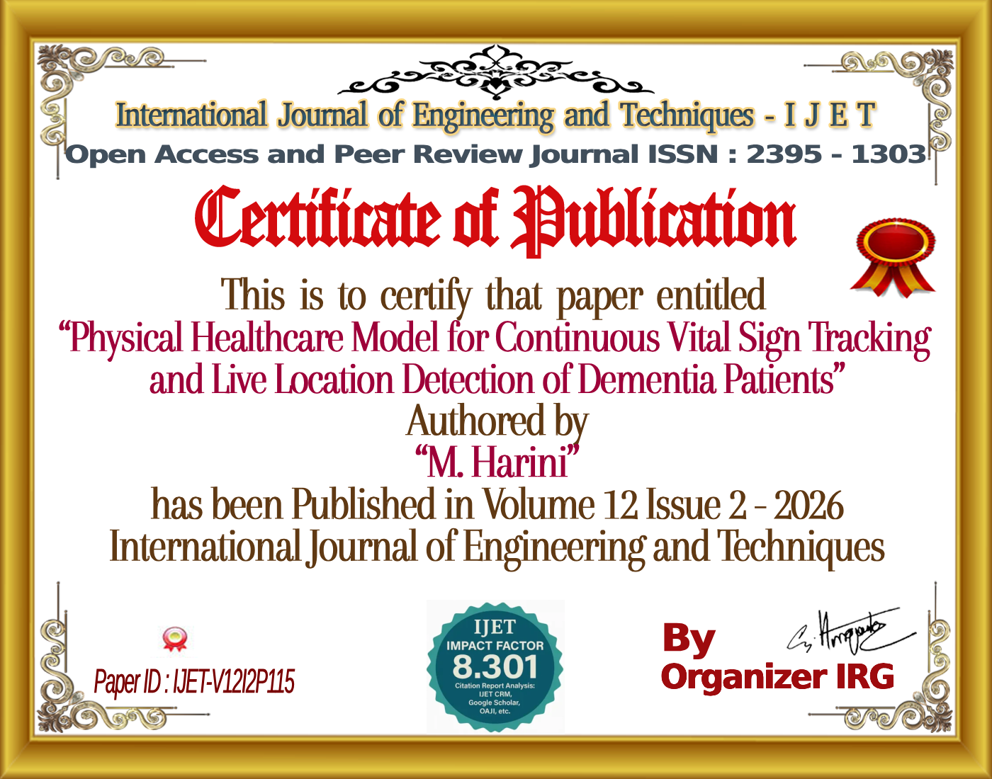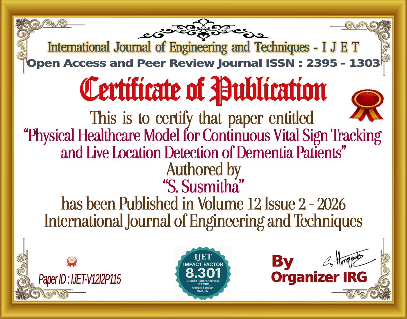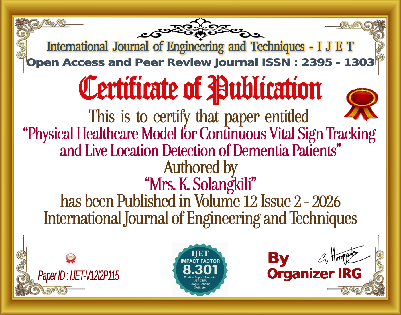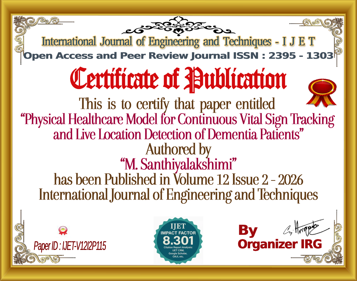 Physical Healthcare Model for Continuous Vital Sign Tracking and Live Location Detection of Dementia Patients | IJET â Volume 12 Issue 2 | IJET-V12I2P115