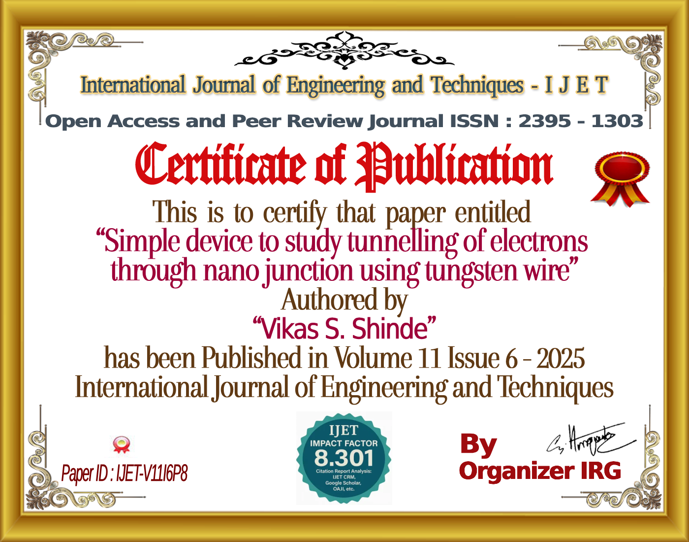 IJET assigns a unique DOI to every accepted article via Zenodo for persistent linking and citation. Your articleâs DOI: https://doi.org/{{doi}}