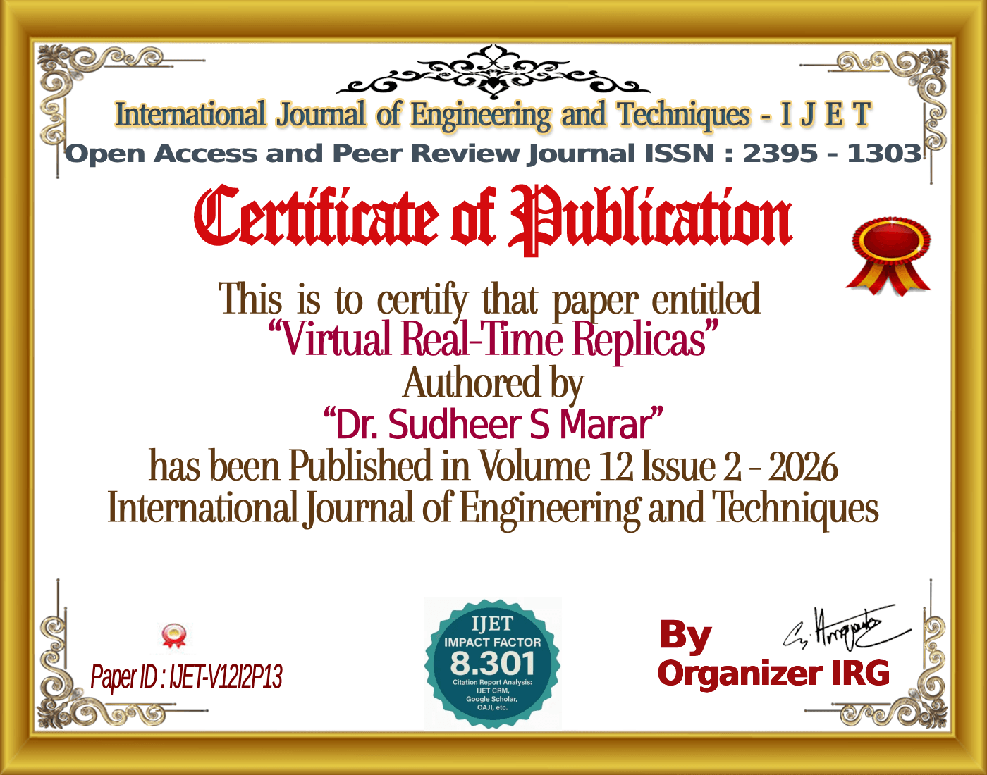 Abdul Manaf.A, Dr. Sudheer S Marar, βVirtual Real-Time Replicas,β International Journal of Engineering and Techniques (IJET), vol. 12, no. 2, March 2026, doi: {{doi}}.